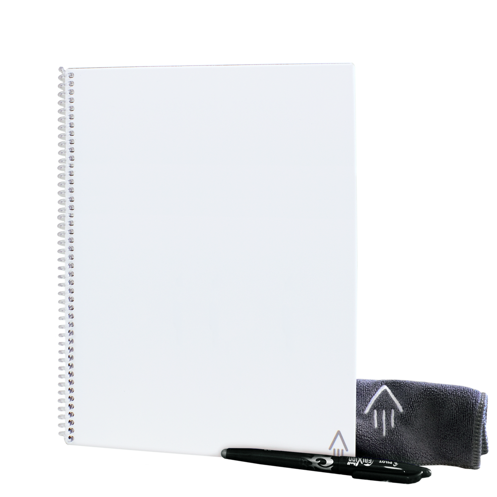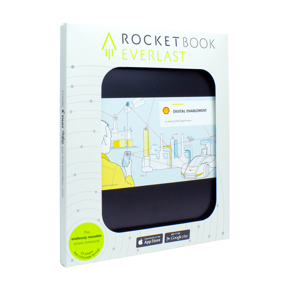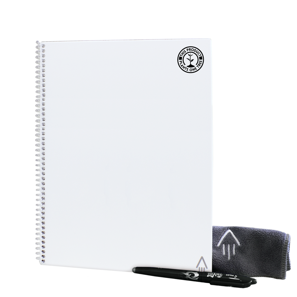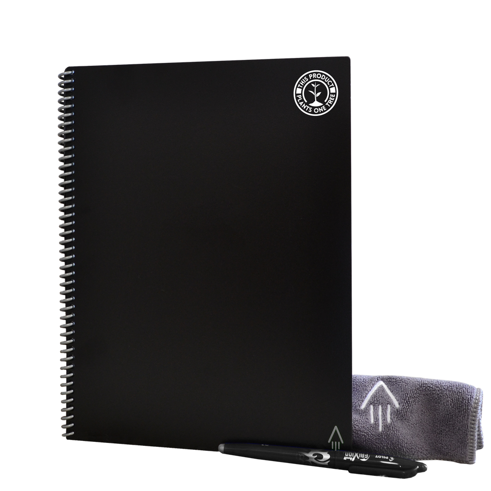 The letter sized Rocketbook Core Smart Notebook provides a classic pen and paper experience, yet is built for the digital age. Although it feels like a traditional notebook, the Core is endlessly reusable and connected to all of your favorite cloud services. Get them branded for the perfect corporate gift. You could even introduce these branded reusable notebooks into your daily workflow throughout your company. When you write using any pen from the Pilot Frixion line, your writing sticks to Core pages like regular paper. Once you scan the page and are ready to erase, simply take a damp napkin to erase the page like magic! Each branded Core Rocketbook comes with a Pilot FriXion Pen as well as a Rocketbook towel to use to clean the pages. Get your branded Rocketbook Core notebooks ordered today. #OneTreePlanted