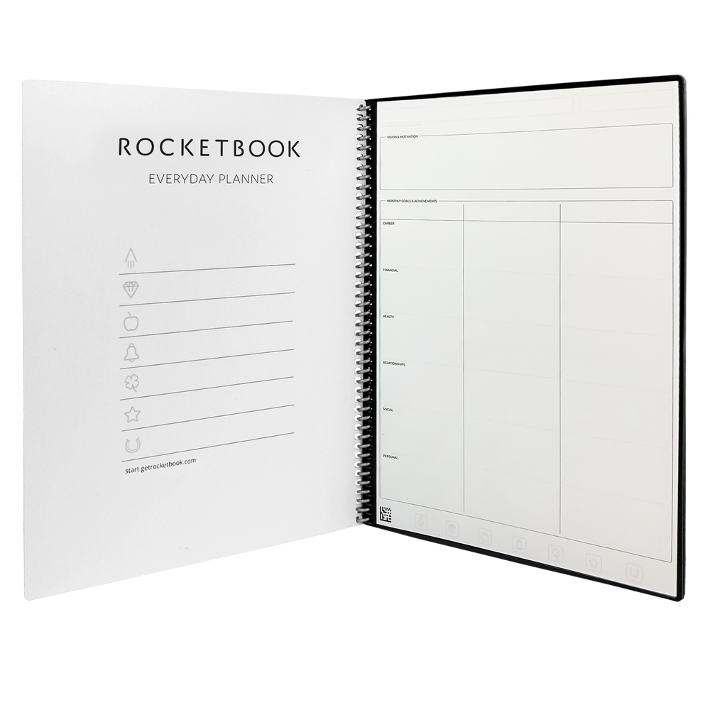 The Everyday Planner is the galaxy’s first guilt-free planner. With minimalist templates and undated pages, this planner fully adapts to your planning style - meaning you can skip days, weeks, or months without judgement or wasted pages. Like other Rocketbook notebooks, this planner works with the Rocketbook app to save digital copies of your plans, share notes, and create digital checklists. Write with any Pilot FriXion pen, then magically erase your pages with water to reuse the Everyday Planner until 2080. Customize yours today!