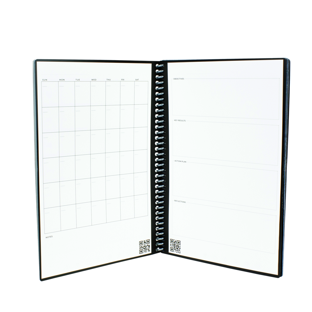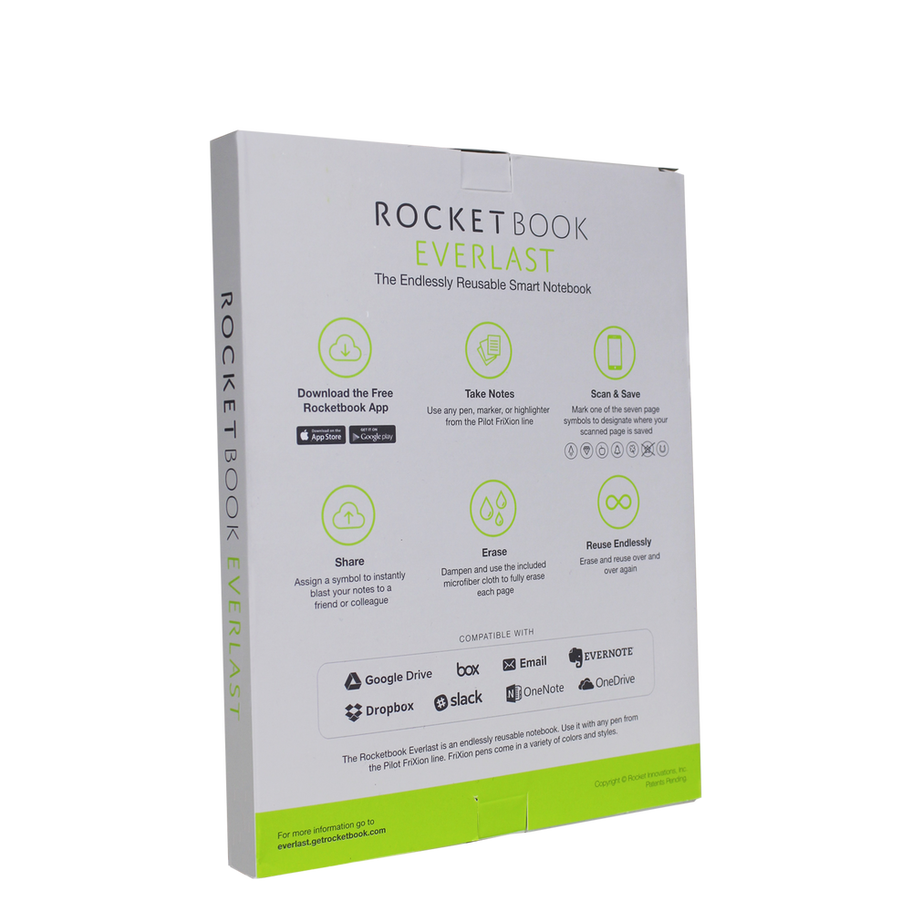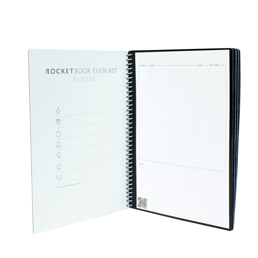 The Rocketbook Fusion is designed for any and every classroom, office, and personal mission. Like it's brother, The Core, The Fusion is a reusable pen and paper notebook with seven different page templates that connect to your favorite cloud services. The biggest difference is that the Fusion has 42 futuristic pages that are packed with calendars, to-do lists, and notetaking layouts. The synthetic paper allows you to write smoothly with a Pilot FriXion pen, then magically wipe clean with a damp cloth to reuse again and again! Use the Rocketbook app to blast your notes, plans, lists, and big ideas to the cloud for proper organization. Then, erase and reuse your Rocketbook Fusion Executive for your next adventure!